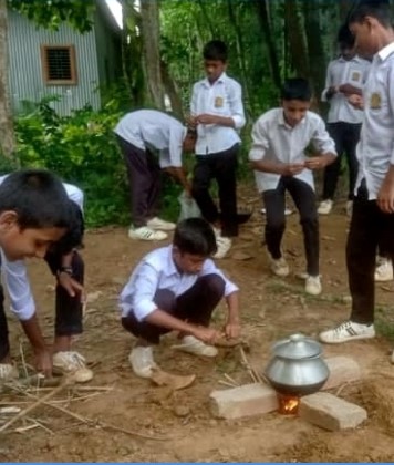জানা গেছে, শিক্ষার্থীদের কৃষিসহ নানা বিষয়ে দক্ষতা অর্জনের লক্ষ্যে নতুন শিক্ষা পদ্ধতিতে জীবন ও জীবিকা নামে পাঠ্য বই অন্তর্ভুক্ত করা হয়েছে। ওই বইয়ের একটি অধ্যায়ে রান্নায় দক্ষতা অর্জনের বিষয়টি রয়েছে। যার অংশ হিসেবে রান্না শিখছে শিক্ষার্থীরা। বৃহস্পতিবার দুপুরে ওই বিদ্যালয়ে গিয়ে দেখা যায়, কেউ পেঁয়াজ কাটছে, কেউ কাটছে মরিচ, কেউ চাল ধুঁয়ে রান্না বসাচ্ছে, কেউ আবার আলু কাটছে। কাউকে দেখা গেল ডিম ভাজতে। কারো ব্যস্ততা চুলায় আগুন জ্বালানো নিয়ে। এভাবে নিজেরা সম্মিলিতভাবে রান্নায় ব্যস্ত শিক্ষার্থীরা।