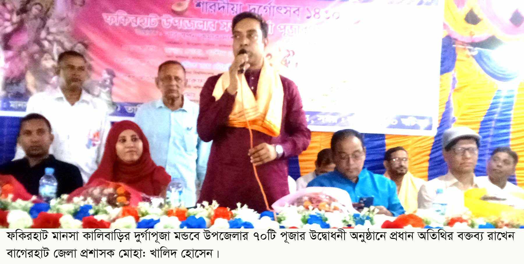 বাগেরহাটের ফকিরহাট উপজেলার ৭০টি দুর্গাপূজার একযোগে শুভ উদ্বোধন