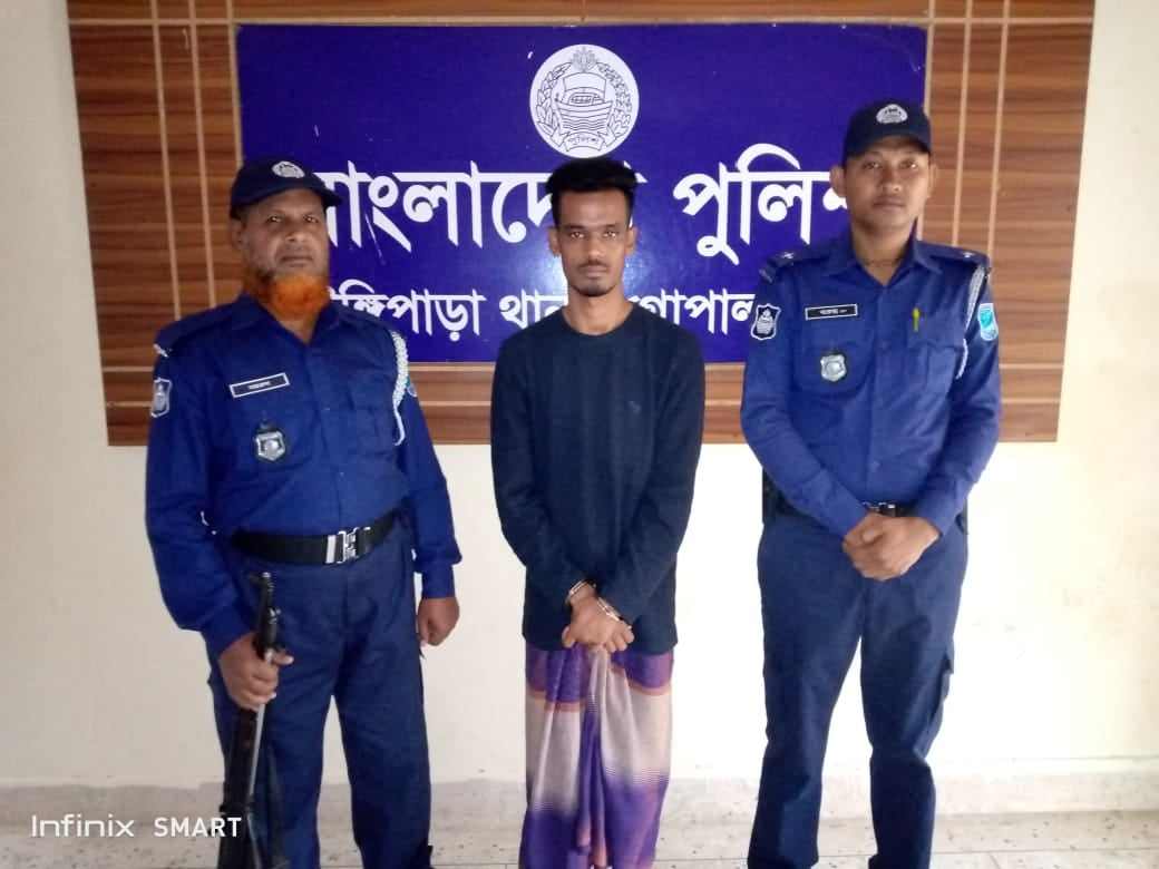 গত বৃহস্পতিবার (১৬ নভেম্বর) রাতে টুঙ্গিপাড়া থানার অফিসার ইনচার্জ খন্দকার আমিনুর রহমানের নিদের্শনায় টুঙ্গিপাড়া থানার এসআই সুবীর সূত্রধর, এসআই ইব্রাহিম ও এসআই বরেন্দ্রের নেতৃত্বে পুলিশের একটি চৌকস দল রাতে গোপন সংবাদের ভিত্তিতে গিমাডাঙ্গা মুন্সীরচর এলাকা হতে গ্রেপ্তার করে তাহিন শেখকে। পরে ১৭ নভেম্বর বিজ্ঞ আদালতের মাধ্যমে তাকে জেলহাজতে প্রেরন করা হয়েছে।
